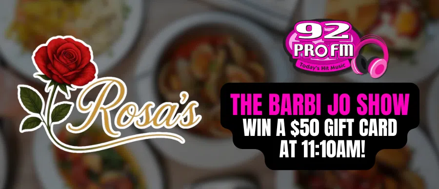 Listen to The Barbi Jo Show starting on Tuesday, February 16th, for your chance to WIN a $50 Gift Card to Rosa's Tavern in East Providence!