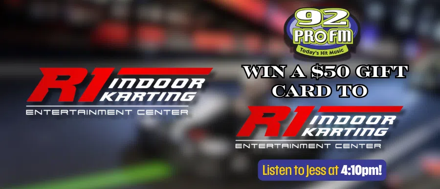 Listen to 92 PRO-FM all week-long for your chance to WIN a $50 Gift Card to R1 Indoor Karting!