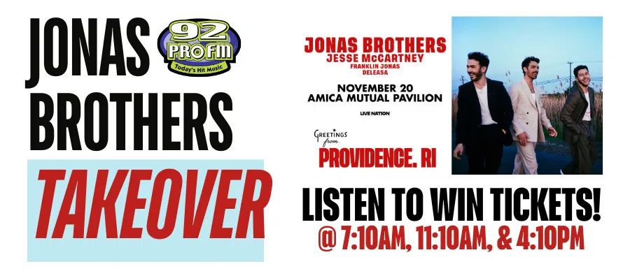 It's the 92 PRO-FM JO BROS TAKEOVER - your exclusive chance to win tickets and join us to see the Jonas Brothers live at the Amica Mutual Pavilion on November 20th! Listen weekdays from Mon, 11…