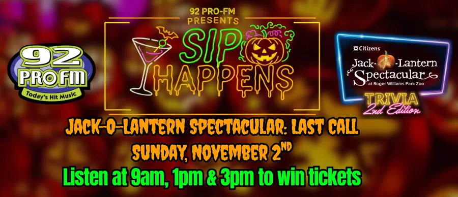 92 PRO-FM is back with Sip Happens, your chance to hang with the ladies of PRO-FM at the Jack-O-Lantern Spectacular: Last Call! …
